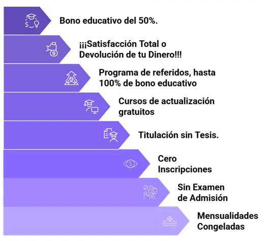 Bono educativo del 50% , Cero inscripciones, Sin Tesis, Ni Examen de Admisión, Mensualidades Congeladas.